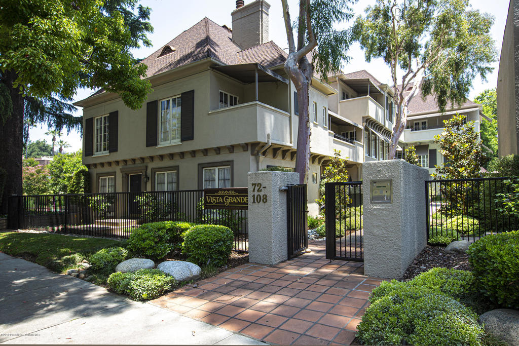 A perfect pied-e-terre on the most elegant and desired street in Pasadena! Feel like you are vacationing in Europe in this lushly landscaped French Normandy building. The elegance of the 9' ceilings, Schonbek lights, Carrera marble fireplace, hardwood flooring and beautiful french doors and windows that afford verdant treetop views and also of the pool and spa, creates a wonderful home to enjoy! Ensuite bedrooms are complete with luxuriously remodeled bathrooms with steam showers, Italian marble tile and Brizo fixtures. The sunny kitchen, with a built-in oven, gas range and stainless steel refrigerator, also accommodates a full size washer and dryer. A kitchen back door takes you to the two storage units and community BBQ and party room. Now you will be conveniently close to the famous Rose Bowl turn and Old Pasadena! Be the fortunate buyer of this gorgeous unit!