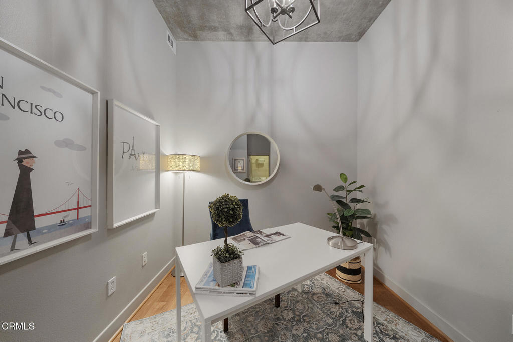 Step into this beautifully designed residence that offers soaring high ceilings and an open, airy layout filled with natural light from bright south-facing windows. A formal entry welcomes you in, complete with a versatile den or office space that can easily function as a second bedroom.The thoughtfully appointed kitchen features sleek stainless steel appliances and a spacious island--perfect for casual dining, hosting guests, and everyday living. The private primary bedroom provides a peaceful retreat, while the expansive bathroom boasts a separate soaking tub and shower, a double-sink vanity, and a generous walk-in closet.Additional highlights include an in-unit laundry room and two-car tandem parking for added convenience.Ideally located in the heart of Pasadena's vibrant Lake Avenue retail and entertainment district, you'll enjoy easy access to shopping, dining, and nightlife just steps from your door.Residents of The Prado enjoy an exceptional array of amenities, including concierge service, a resort-style pool, screening room, entertainment kitchen, fitness center, and beautifully designed gathering spaces ideal for relaxing or entertaining.