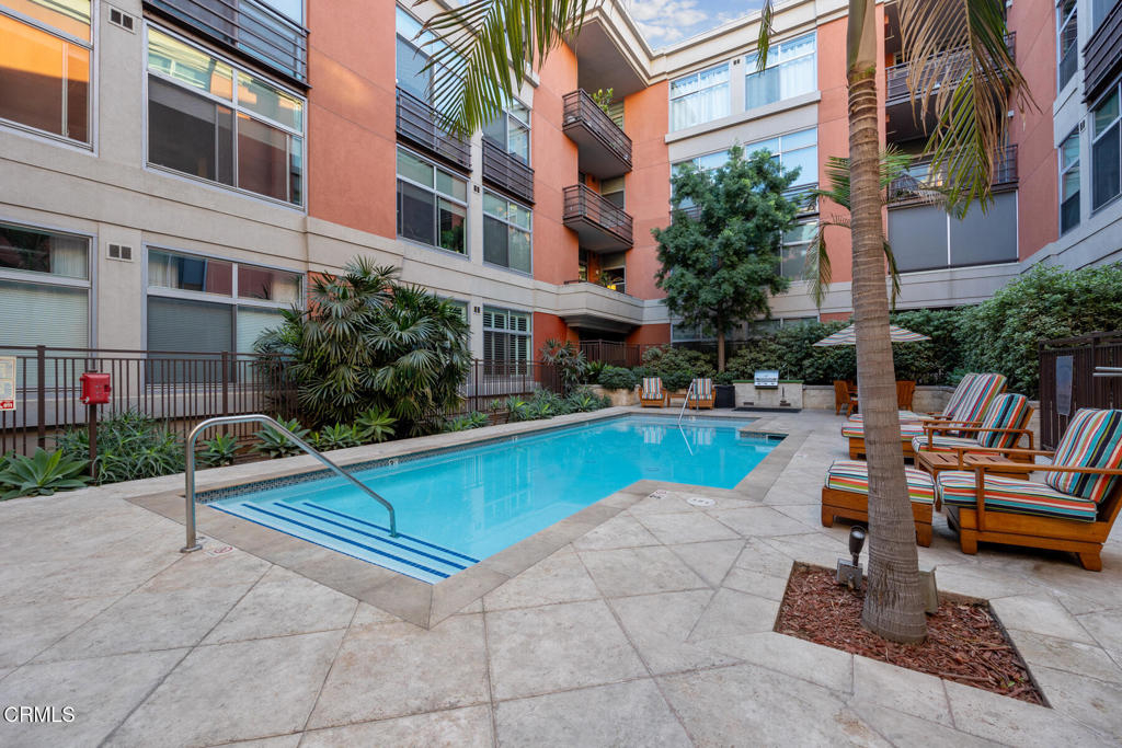 An extraordinary opportunity to own the premier location in the prestigious Prado on Lake Avenue building. This is an interior unit with overlooking views of the palm tree courtyard, BBQ and pool area. You will have no road noise and you will not be overlooking a parking lot or street. As you enter your residence you will be struck by an open floor plan and the 10 ft. high exposed concrete ceilings. This is one of Prado's best 1 bedroom / 1 bath layouts as it offers a separate entry to the bathroom from the living space as well as from the bedroom. In unit washer/dryer, stainless steel appliances, built-ins, granite kitchen and bathroom counters. The unit is located on the same floor as Prado's most important amenities- fitness center, 20 seat private theater and an entertainment area with fully equipped community kitchen. Other amenities include a clubhouse, resort-style pool, lounge, coffee & tea bar and a bike storage room. The building offers 24 hour concierge, dry cleaning service, and security and is the ultimate location steps away from shopping, restaurants, and theaters. Don't miss this rare opportunity to own one of Prado's best one bedroom one bath units. Unit can be sold Furnished if needed.
