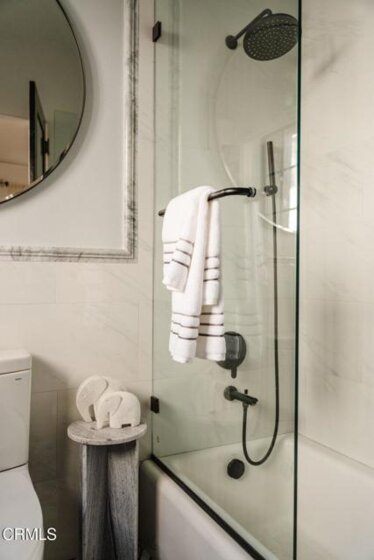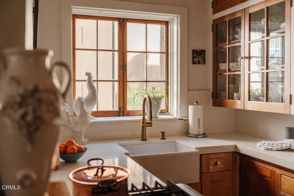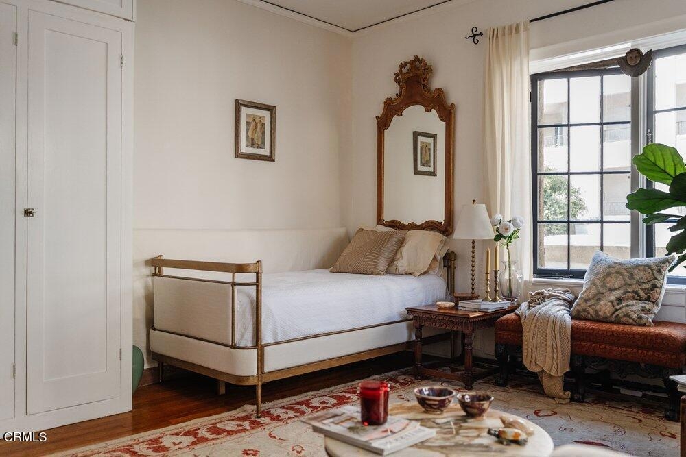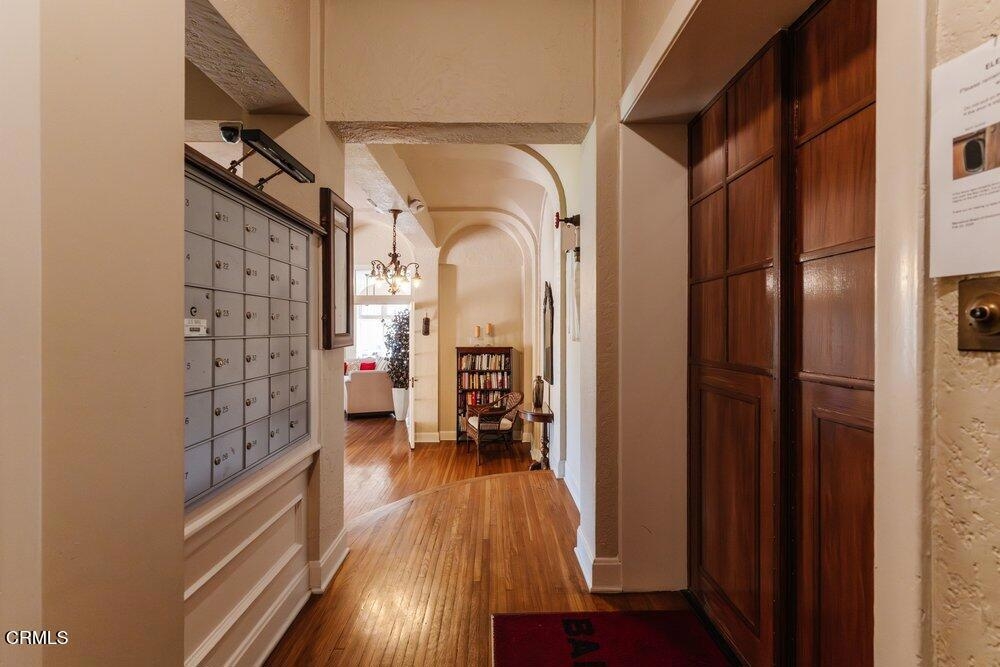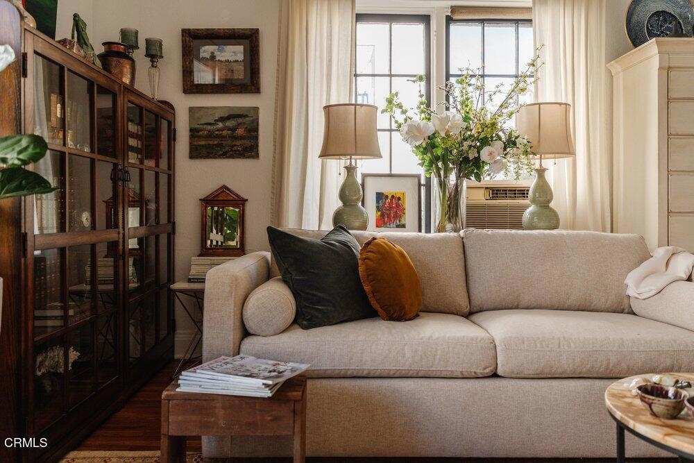 The Barcelona is located in the Playhouse District of Pasadena and convenient to a myriad of shopping and dining options! It was built in 1922 designed with charming Spanish Architectural details by Walter Follard. This charming unit is at the end so light streams in through its many windows. The open floorpan with high ceilings features the original windows, hardwood flooring, picture molding and custom cabinetry. The bright kitchen has been stylishly remodeled featuring Shaker style wood cabinetry with glass doors on the upper cabinets and quartz countertops. Most importantly you have your own laundry with a combination washer/dryer unit tucked under the countertop! A custom built-in extends into the dining area and cleverly disguises the refrigerator while also offering abundant storage. The bathroom has been remodeled as well using classic finishes that are elegant and dynamic. The HOA conveniently includes utilities as well as a 6'x4' storage space. The Barcelona is a unique building that has earned Historical status and as such, benefits from the Mills Act which offers a significant discount for your property taxes.