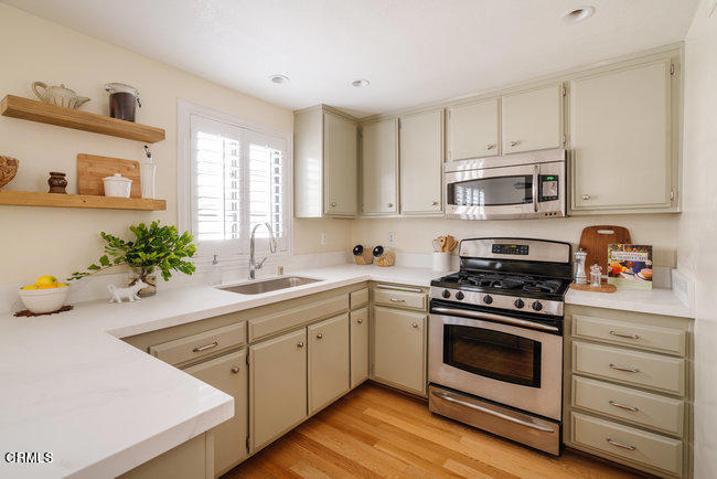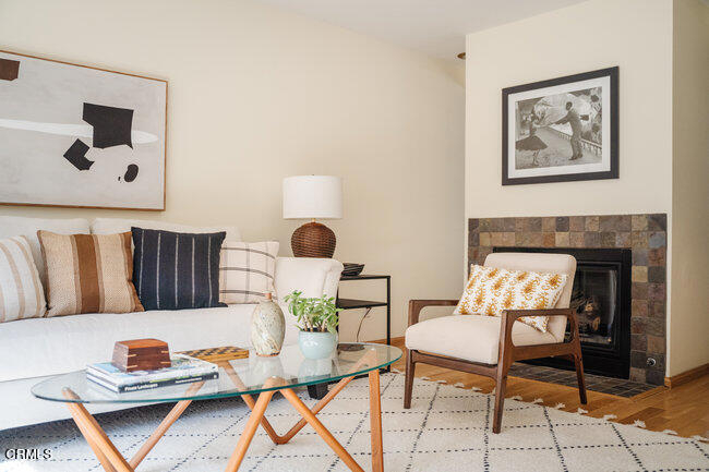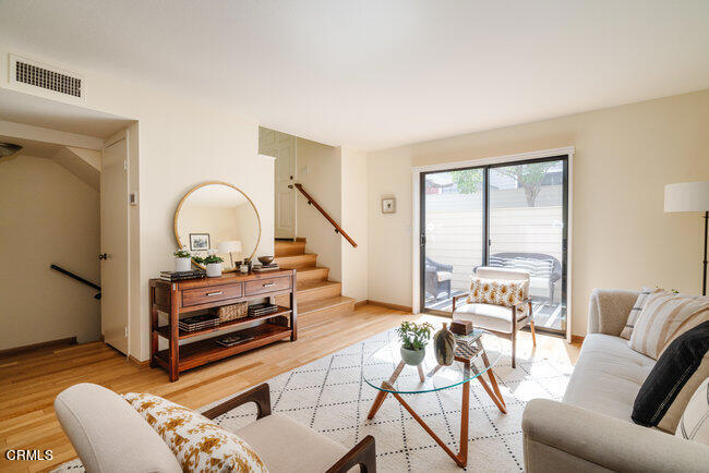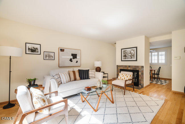 This exceptional townhome is located in the ever popular Windemere complex in the heart of Madison Heights! This location is the perfect combination of residential & suburban living! Head out your door and walk by stately homes along tree-lined streets or head into Old Town Pasadena just a short distance away! At first glance you can see how the beautiful hardwood flooring flows throughout the living areas, expansive sliders open to an intimate brick patio & a fireplace with slate tile surround gives definition to the dining room. The kitchen features modern Calcutta style quartz countertops, stainless steel appliances, & plantation shutters here & throughout the home. Upstairs you will find two spacious bedrooms both with dramatic vaulted ceilings & their own personal bathroom complete with custom wood vanities & granite countertops. The master bedroom however also enjoys the luxury of a walk in closet.