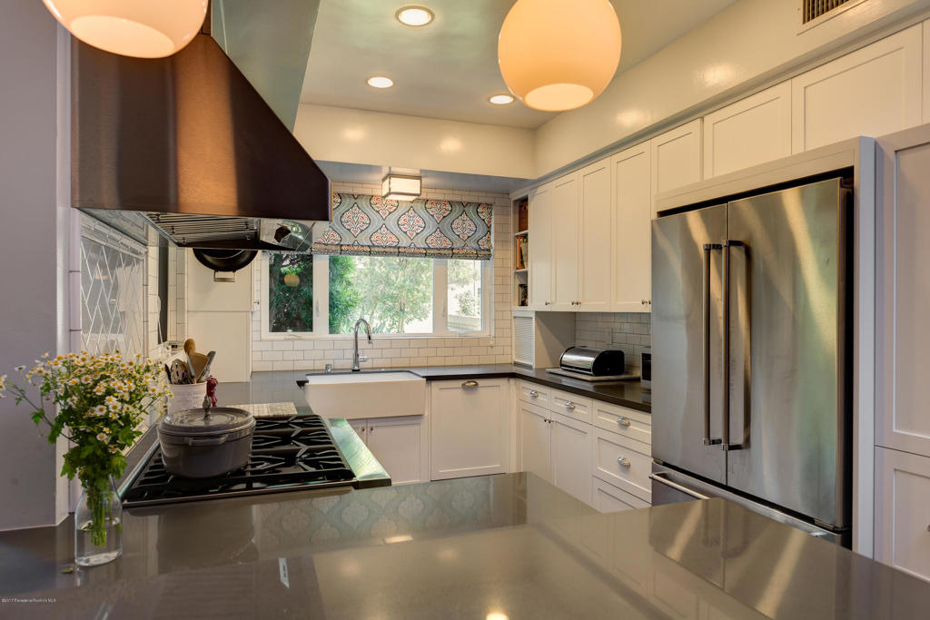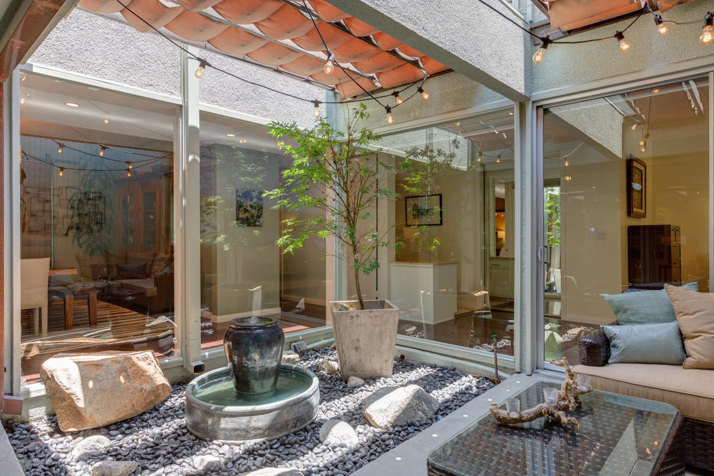 This stunning, mid-century condo boasts three bedrooms, three bathrooms, a double-door entry and an outdoor patio. With a water feature and open-air feel, the atrium off the entry is an entertainers dream and has access to the master suite, living room and dining room. In the spacious living room with a gas fireplace, windows fill the room with sunlight. Off the hallway is a bedroom suite with double sinks and a built-in wardrobe. The dining room is central to the home and features a spectacular barn door. The eat-in kitchen includes a Thermador Professional six-burner stove, Quartz countertops, a wine refrigerator, a farmhouse sink, loads of storage and a breakfast bar. A gorgeous master suite completes the unit with a spacious walk in closet, marble shower and vanityarea, and separate bath featuring marble countertops and shower. With its close proximity to wonderful Old Town Pasadena's restaurants, shopping, and fitness studios, and a short drive to Downtown Los Angeles, this beautiful home is situated in the ideal location.
