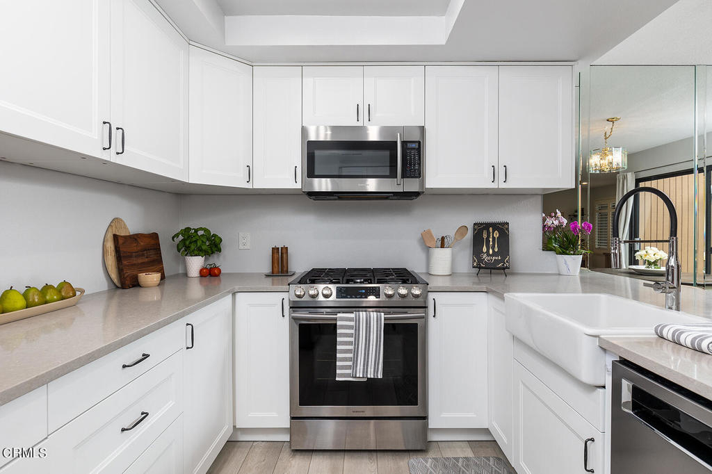 Presenting a sophisticated condominium located within the prestigious gated community in sought-after Southwest Pasadena. This light-filled two-bedroom abode is nestled on a picturesque, tree-canopied avenue, mere moments from the historic charm of Old Town Pasadena. Upon entry, one is welcomed by an expansive living room adorned with elegant and newly installed flooring and a classic brick fireplace. The refined dining area opens onto a secluded patio through sliding glass doors. The recently renovated kitchen boasts a convenient breakfast bar, abundant storage, and modern fixtures. A tastefully updated powder room and convenient in-unit laundry further complement the home. Ascend to the second level, and the master suite unveils soaring vaulted ceilings, a generous walk-in wardrobe, and an en-suite bathroom featuring dual vanities. The sizeable secondary bedroom provides copious closet space. A full bathroom in the hallway and supplementary linen storage complete the second floor. Additional interior amenities include central air-conditioning and contemporary recessed lighting. Two covered parking spaces, a community pool, and professionally landscaped and mature park-like gardens add to this unparalleled Pasadena locale. With effortless freeway access, public transportation, and proximity to premier shopping and dining experiences, this condominium is a rare gem not to be overlooked.