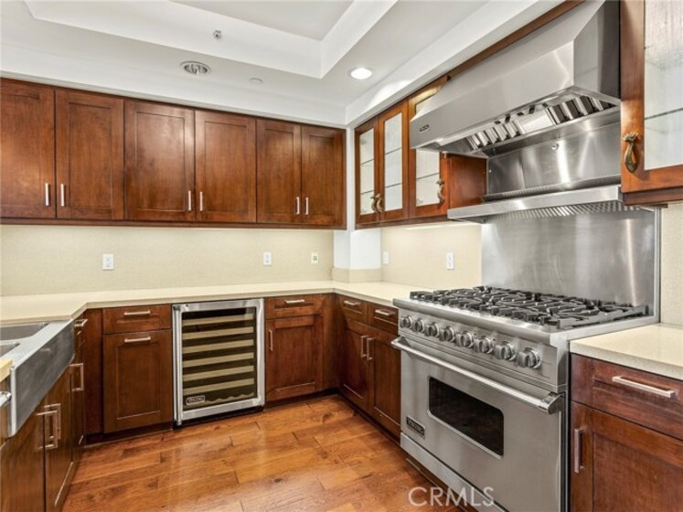 Welcome to luxury living in central Pasadena, located half a block east of Lake Ave, between Del Mar and California, on the second floor with South and West-facing views. This corner residence offers a generous amount of natural light in every room. This unit has a gracious, large floor plan with an open living room/dining area with direct access to both the south and west-facing balconies. There is also a gas-fired fireplace in the living room. The kitchen has an open pass-through countertop to the dining area. The kitchen has all high-end stainless-steel appliances, including a wine refrigerator. The master suite has a good-sized bedroom with direct access to the very large south-facing balcony. The master bathroom is very large with a long counter-top with two sinks, a separate bathtub, and a large glass-enclosed shower. The master suite walk-in closet is big enough to dance in, and that means two people. The 2nd bedroom suite is large enough to fit any size bed. It also has approximately 15 feet of custom-built cabinet space/countertop space with two levels of shelving above. There is also a walk-in closet in this suite. The guest 1/2 bathroom is off the hallway and is not small at all (I have used it with my wheelchair myself). This unit and the entire complex are very handicap-friendly. There are two designated side-by-side parking spaces in the subterranean garage with easy handicap access to the elevator. There is also a designated walk-in storage locker in the garage. Common area amenities include a swimming pool and jacuzzi, a very well-equipped workout room, and meeting room and lounge.