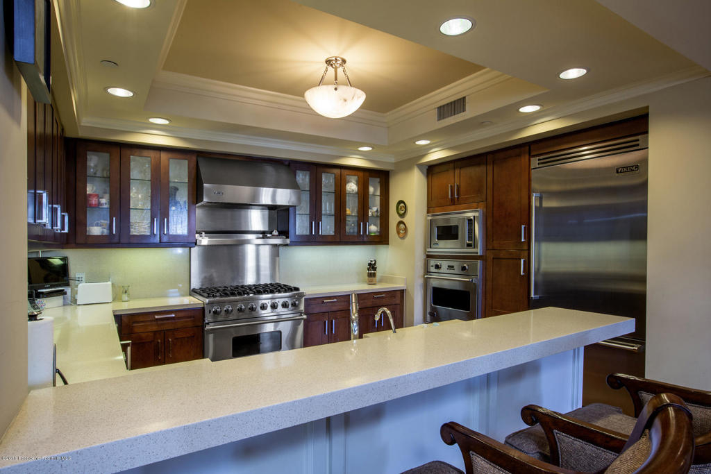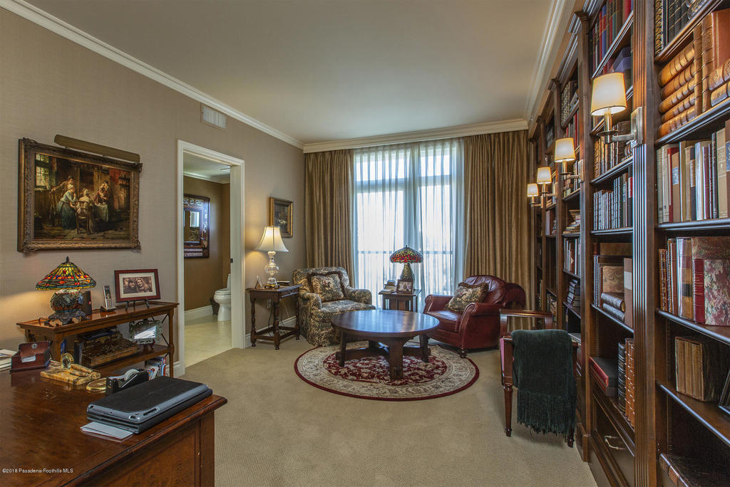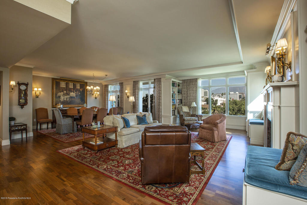 Luxury living at it finest, meticulously anointed, this fourth floor unit has been completely redesigned with the finest of materials. Located in Pasadena's premier concierge building, this corner unit has windows on three sides with serene mountain views. This two bedroom suite home features: open floorplan with gourmet kitchen with Viking appliances, living room with silk wallpaper and custom drapes and blinds and library with custom stained book shelves and lighting. The traditional design elements such as: newly added crown moldings, brass sconces and chandelier and custom stained front door are complemented by its modern amenities: touch pad lighting controls, motorized shades and custom recessed and pin lighting. Located in the heart of Pasadena, close to boutique shopping, restaurants and Cal Tech, Granite Park Place is renowned for its concierge living: valet parking, state-of-the-art fitness center, 24-hour staffing, pool/spa and private club room and library. A truly wonderful home with convenience, comfort and security.Additional Features:*Four-ton AC unit, new 2016*Two parking spaces next to elevator, one with Tesla charging unit*Three private terraces*Separate laundry room*Large, private storage room