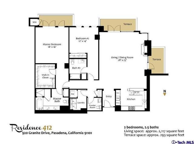 Welcome to the epitome of Pasadena living. Located on the fourth floor, Residence 412 at Granite Park Place offers a gracious floor plan with 2 bedrooms suites, each with their own en suite bathroom and closet. This southwest corner residence offers a generous amount of natural light in every room. This residence has excellent outdoor space with 3 terraces. There is a large kitchen with Viking appliances, a large great room, incredible amount of wall space for art, an extra powder room, and laundry room with washer and dryer included. Granite Park Place is a full service luxury building. Services and amenities include 7 days a week concierge and valet parking services, club room, fitness center, pool and spa, outdoor fireplace and poolside barbecue.