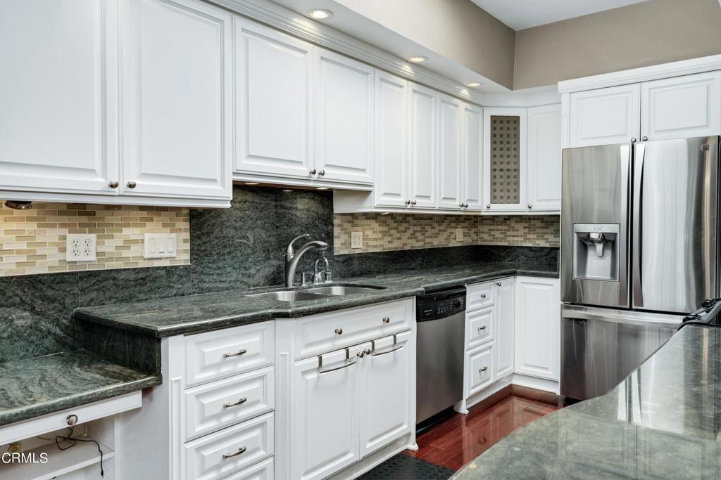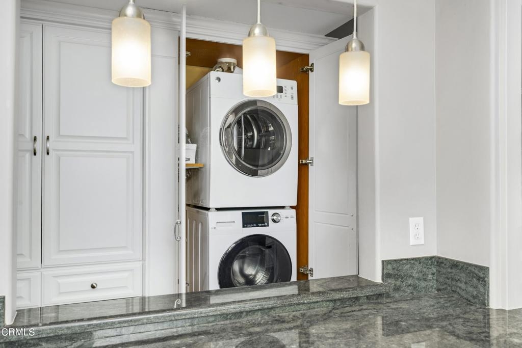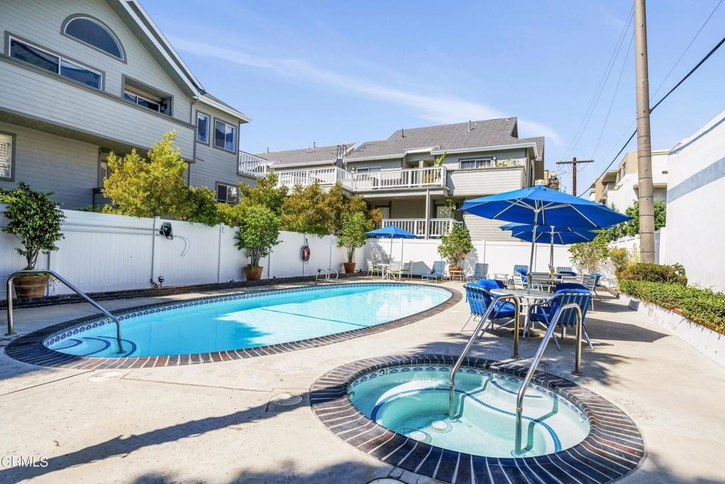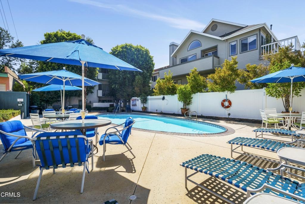 Location, location, location! This meticulously updated 2 bedroom/2 bathroom top floor condominium is a one-of-a-kind beauty. Boasting hardwood floors, custom cabinetry, and a bright skylight, the unit features remodeled kitchen and bathrooms, two spacious bedrooms, and an expansive living room with fireplace and balconies. You'll have comfort and convenience with central heat and air conditioning, in-unit washer and dryer, and a dedicated, covered parking space immediately adjacent to the elevator in the secure, gated garage. The property, set back from the street in a lush, private landscape, features a hidden patio with heated pool and spa perfect for outdoor lounging. With a walkability score of 91, this centrally located condo, nestled between the shops and restaurants of the South Lake shopping district and the expansive quads and striking architecture of the Caltech campus, is Pasadena perfect!