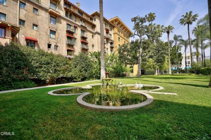 Experience timeless living in the iconic Castle Green, built in 1898, one of Pasadena's most treasured architectural landmarks. Located in the heart of Old Town Pasadena, live just steps from exceptional restaurants, shops, and vibrant city life. Listed on the National Register of Historic Places and benefiting from the Mills Act. Castle Green is beautifully maintained and rich with architectural character. The building welcomes residents with a grand lobby featuring Moorish and Victorian influences, a doorman, a marble staircase, and the original iron birdcage elevator that reflects the building's remarkable history. Unit 206 is a light filled studio residence offering a thoughtfully designed layout with charming views. Residents enjoy exceptional amenities including a rooftop terrace with sweeping views, beautifully maintained gardens, and a community room that can host gatherings from 20 to 200 guests, available to residents twice per year at no charge. HOA dues include electricity, gas, water, and complimentary laundry facilities within the building. Designed by renowned architect Frederick Roehrig and built by Col. George G. Green. Castle Green remains one of Pasadena's most distinctive and beloved residences. Become part of the story and experience life within a true piece of history.