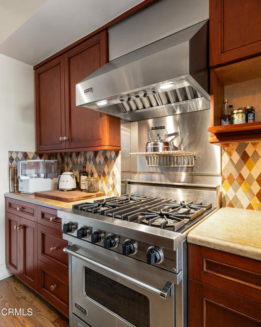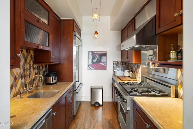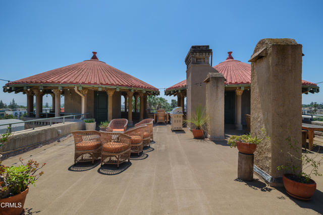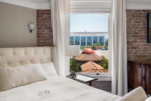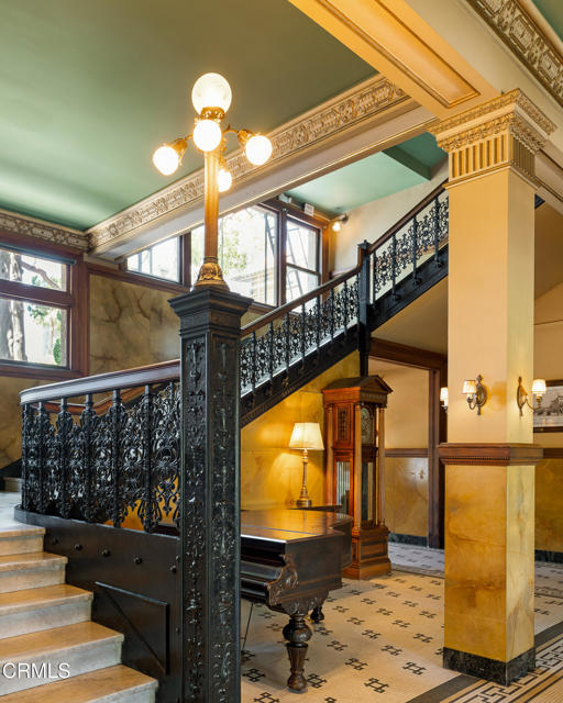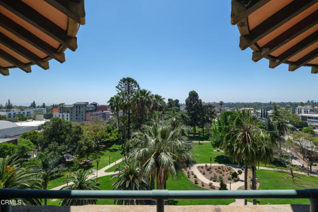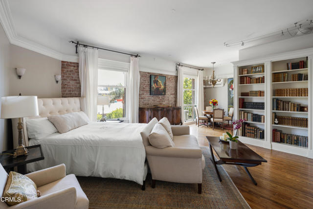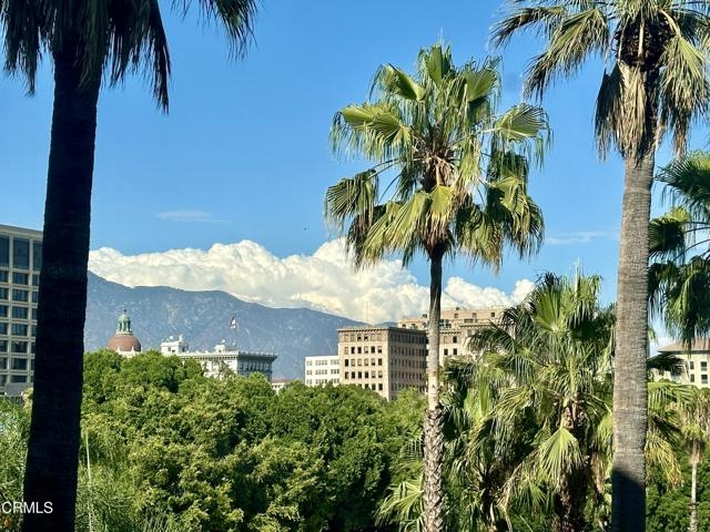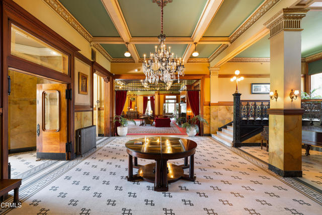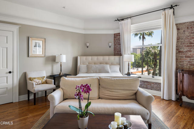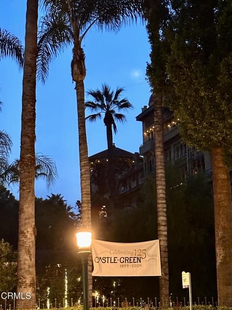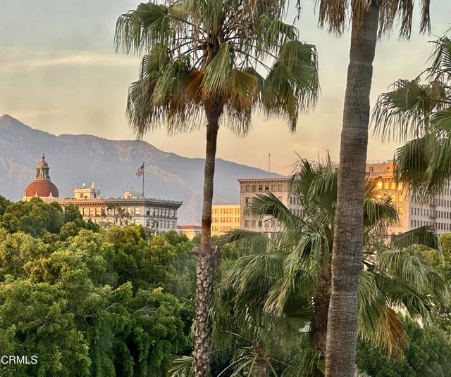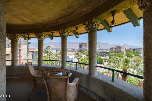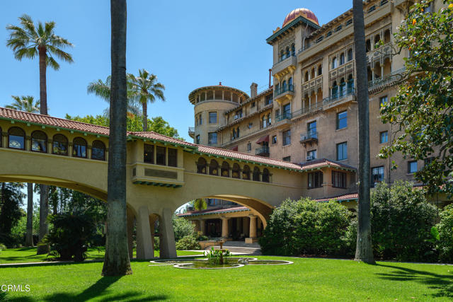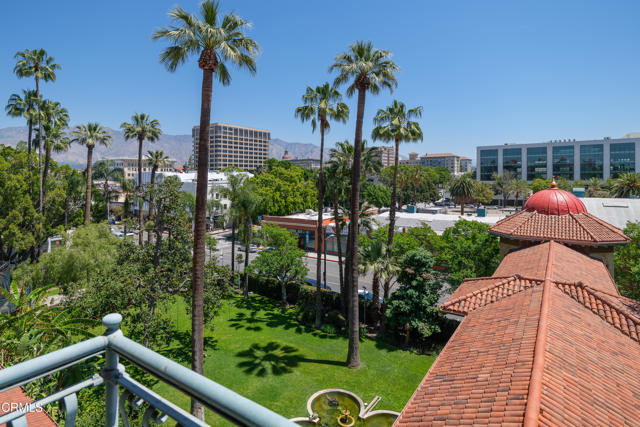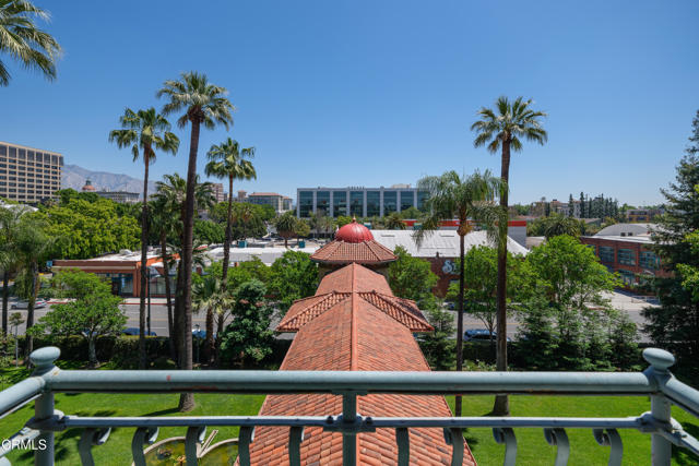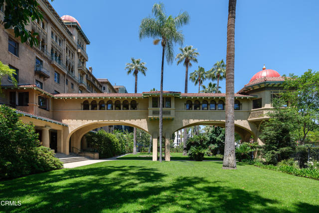 Located in the heart of Old Town Pasadena, Castle Green is an iconic landmark built in 1898. It is on the National Register of Historic Places and has Mills Act tax status. The building has been beautifully maintained and retains plentiful decorative and architectural details. Upon entering the gated complex, you're welcomed by a doorman into the grand lobby, replete with Moorish and Victorian influences, a wide marble staircase and an original birdcage iron elevator. Unit 409 is a studio layout and has been tastefully renovated throughout with high end finishes, designed to be modern in function and historic in character. The main living area has solid oak flooring with floor to ceiling windows, an exposed brick wall, a decorative fireplace and abundant built-in cabinetry. The light and views from this East facing unit are exceptional. In the distance are the San Gabriel mountains and below are views of the garden and cloverleaf koi pond. The compact chef's kitchen has stone counters, a decorative tile backsplash and Viking and Fisher Paykel appliances. The artistically renovated bathroom has a tub/shower combination, a gracious vanity with a stone counter and marble flooring. Adjacent to the bathroom is a custom configured walk-in closet with built-in cabinetry.The HOA dues include electricity, gas, water, in-building free laundry and 24-hour elevator service. Designated parking is available just across Green Street in the city parking structure. One pet per unit is allowed. All of the stunning common rooms, rooftop terrace and gardens are for you to enjoy at will, including the ability to host unlimited small events (up to 20 people) and larger events up to 200 guests free of charge twice per year! The location of Castle Green affords its residents easy access to the ever-evolving Old Town attractions.